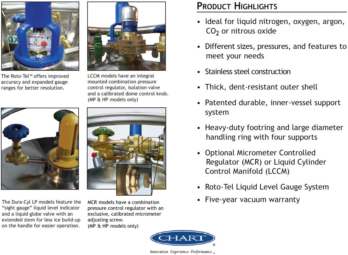 查特液氮罐杜瓦瓶是市场上使用比较广泛占有率比较高的同类产品,查特公司在真空储存深冷领域在40多年前就开始研发产品,现在主要研究低温介质储存的低耗损储存和长寿命的使用。