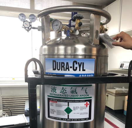 查特杜瓦瓶上根据内部储存介质贴上相应标贴,防止混装混用,也用以明示内部介质。